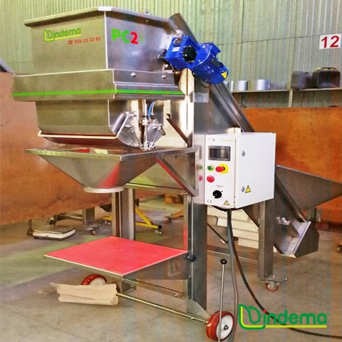 Pesadora envasadora semi- automática de un cabezal de pesaje electrónico, para hacer pesadas entre 5 y 25 Kg.